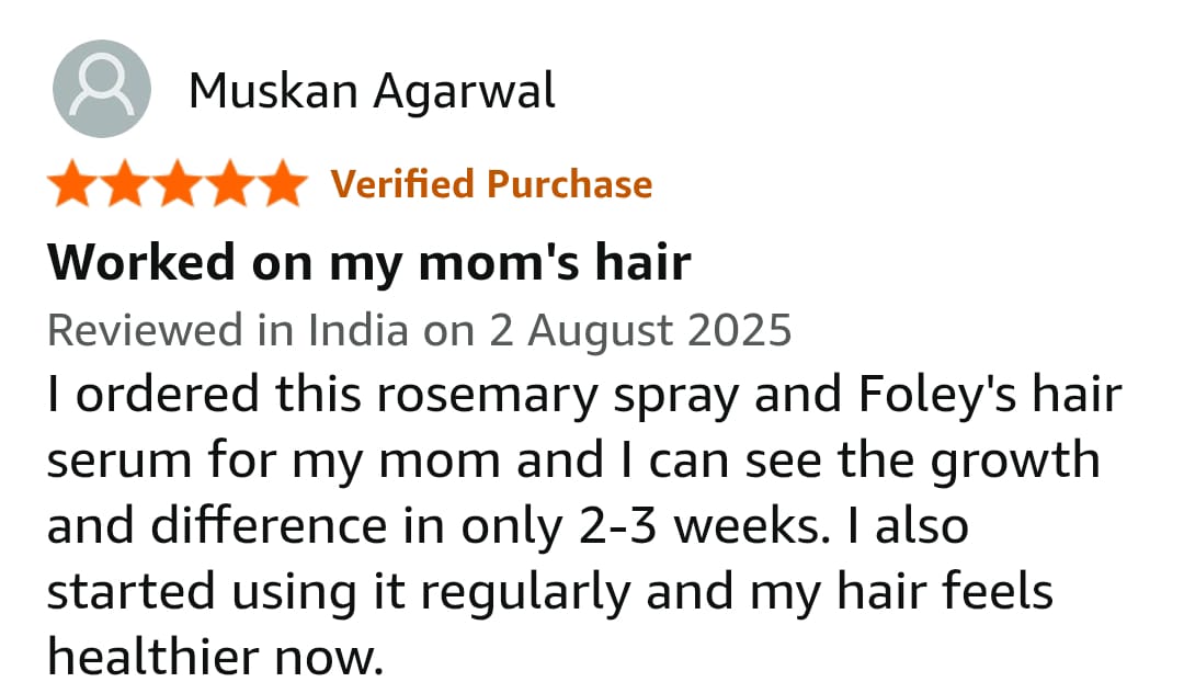 FOLEYโ€™s Rosemary Water Spray is a clean, plant-based formula crafted with scientifically backed ingredients like rosemary, fenugreek, and lemongrass.