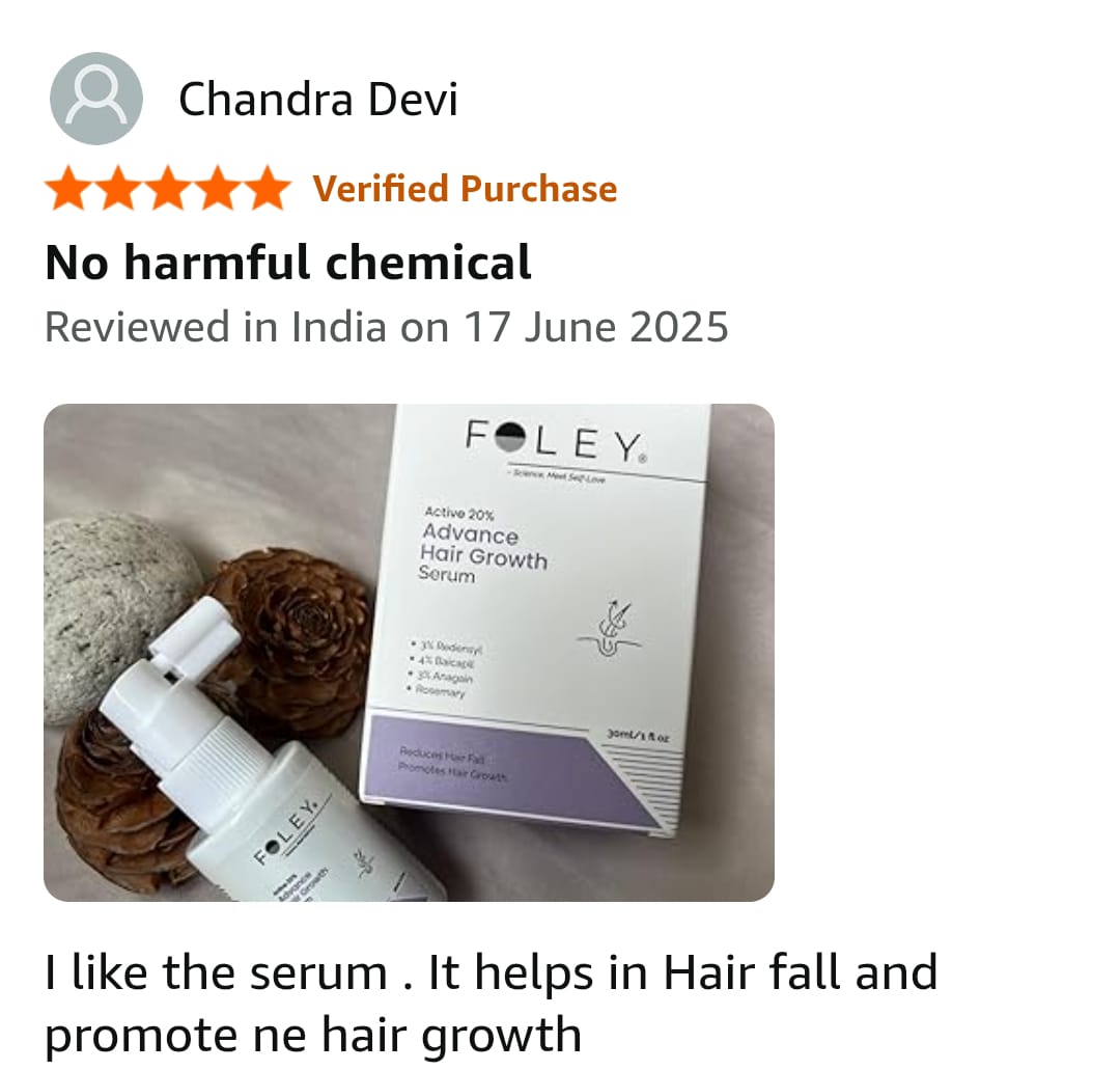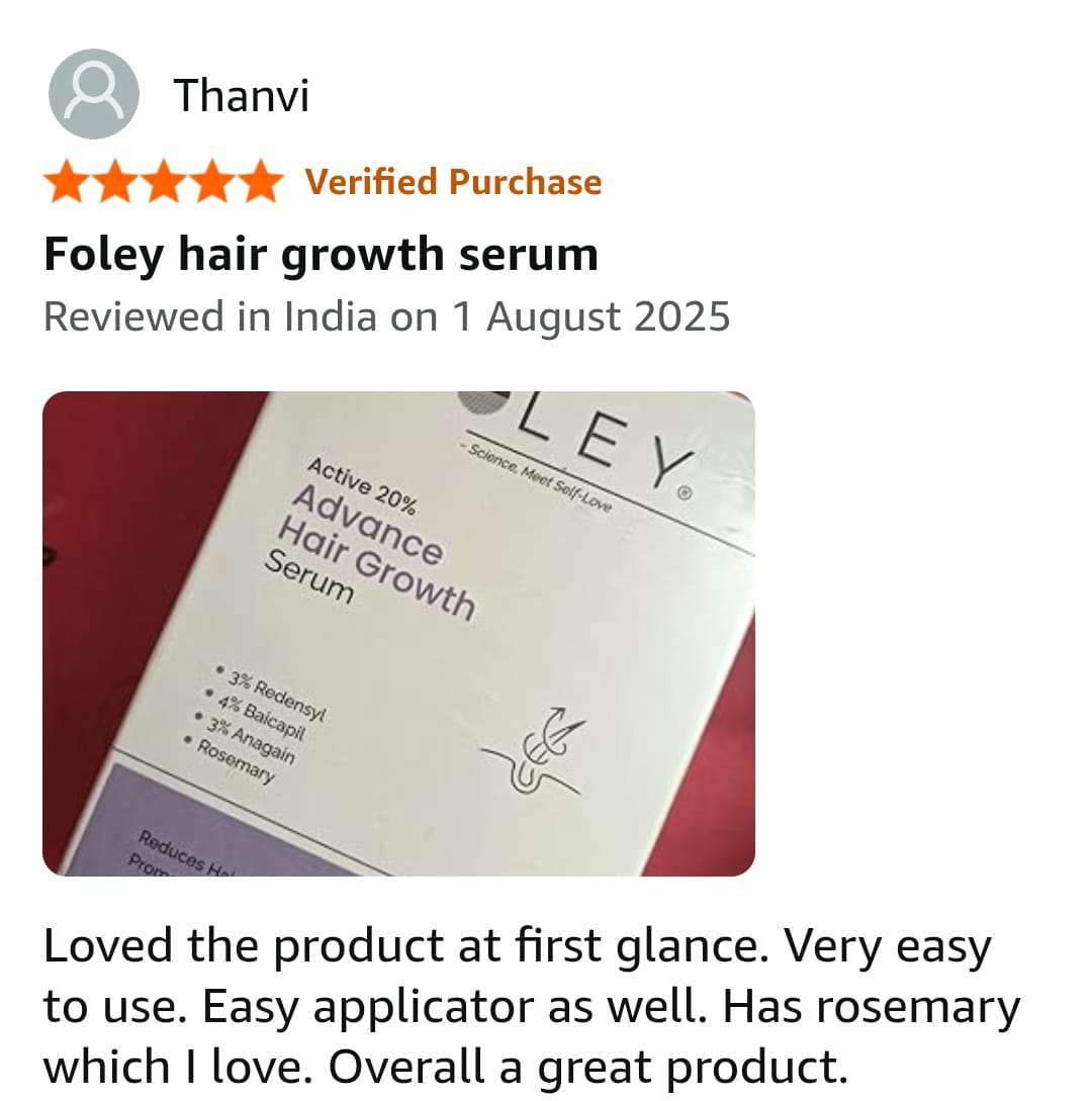 Foley Hair Growth 20% Serum features a powerful blend of globally recognized hair actives backed by clinical studies.