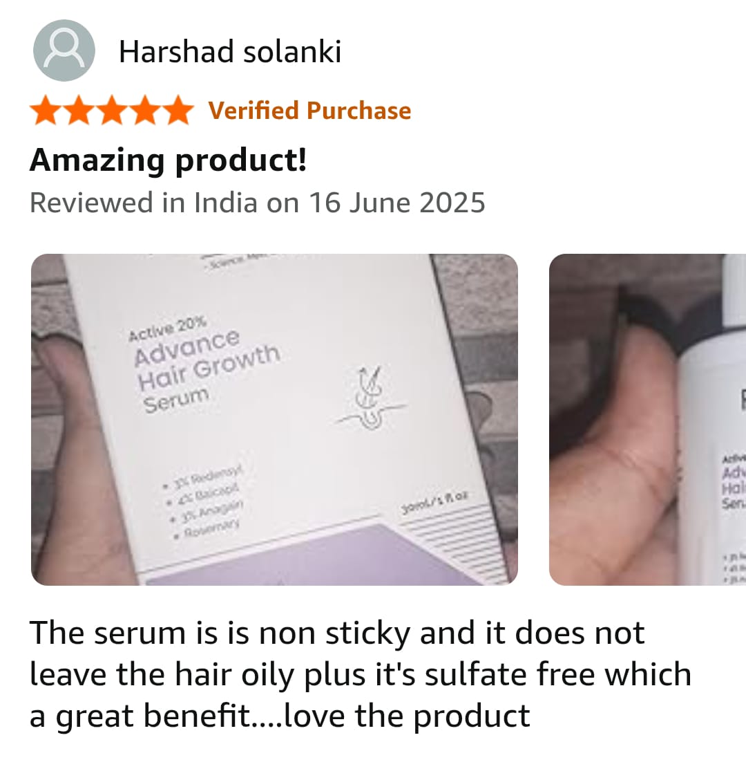 Powered by a 20% Active Complex, this serum blends 3% Redensyl, 4% Baicapil, and 3% Anagain—three clinically proven actives known to boost hair density, reduce hair fall, and stimulate dormant follicles.