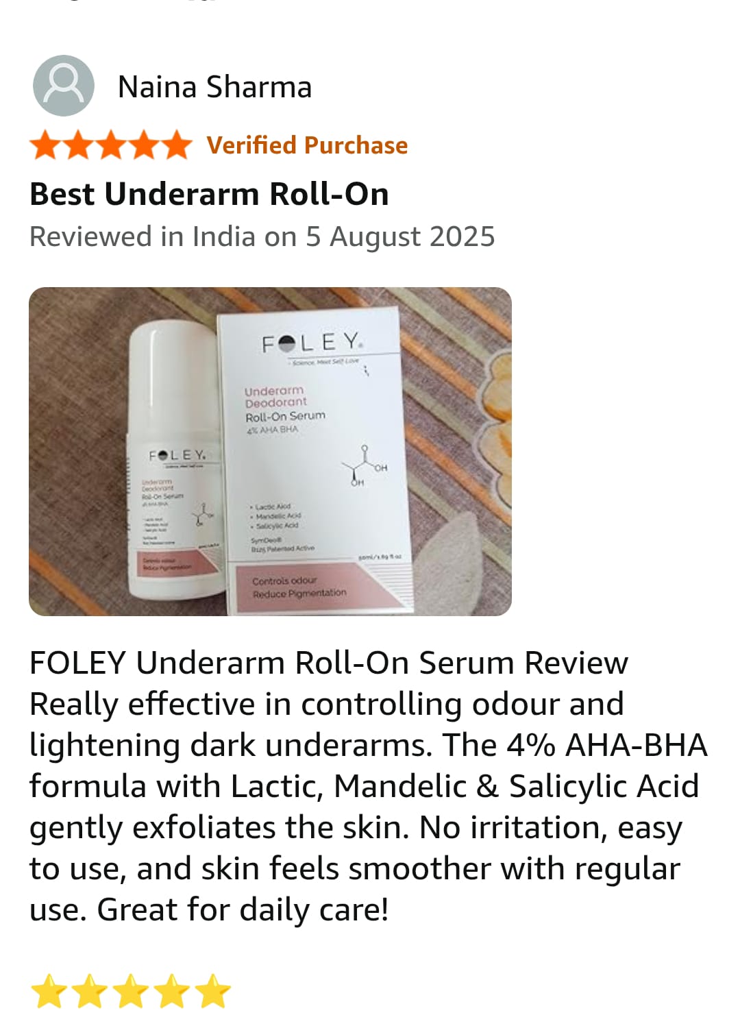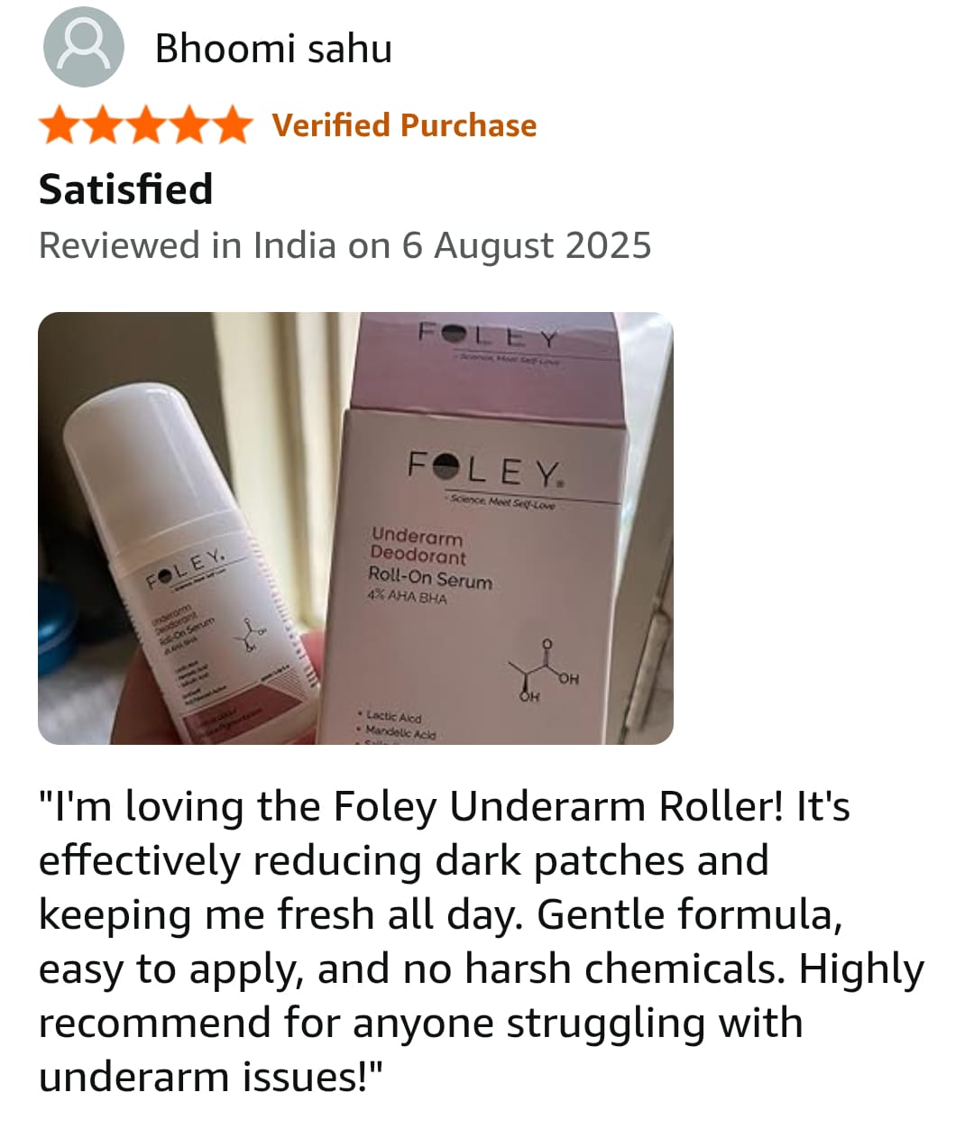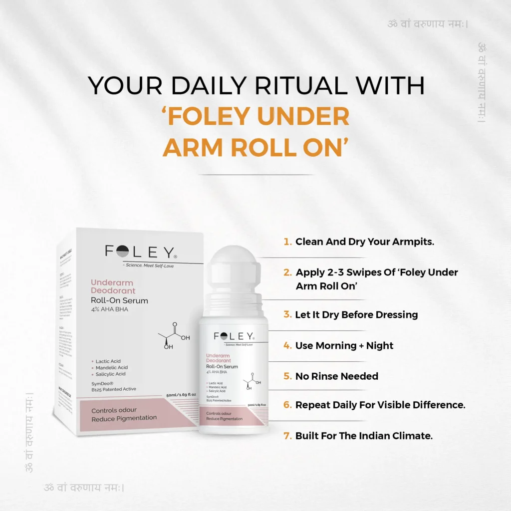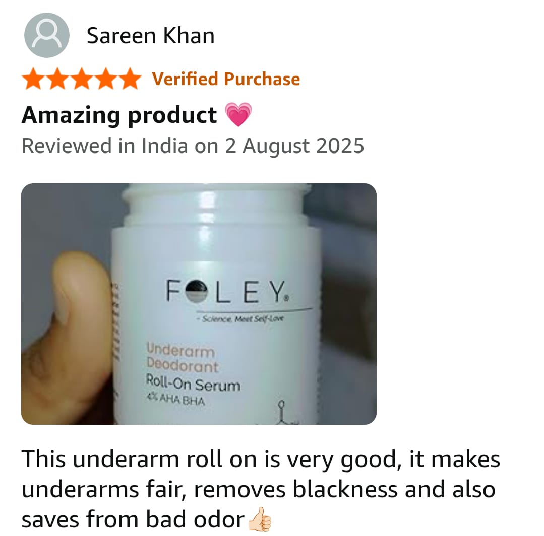 Foley Underarm Roll-On is clinically formulated with pH-balanced, ISO & GMP-certified ingredients, suitable for all Indian skin types.