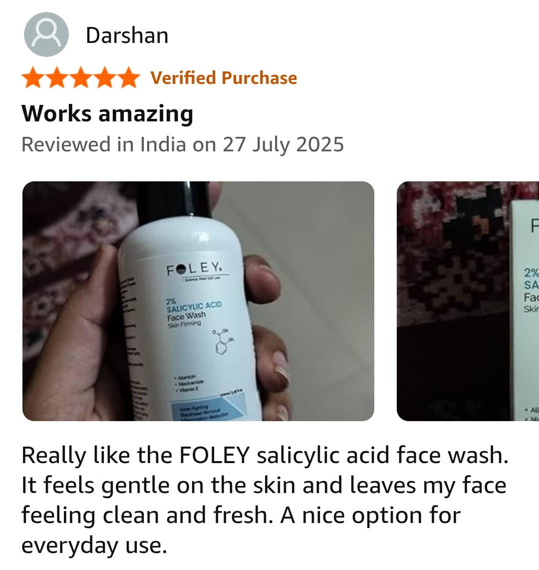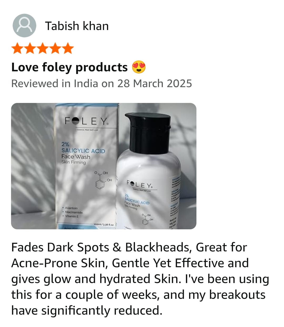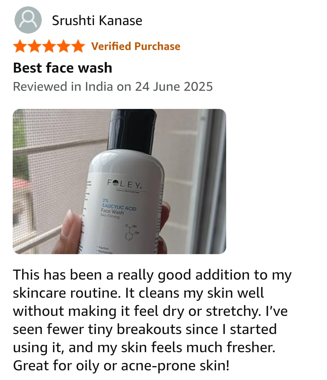 Foley 2% Salicylic Acid Face Wash is dermatologist-tested, oil-free, and non-drying.