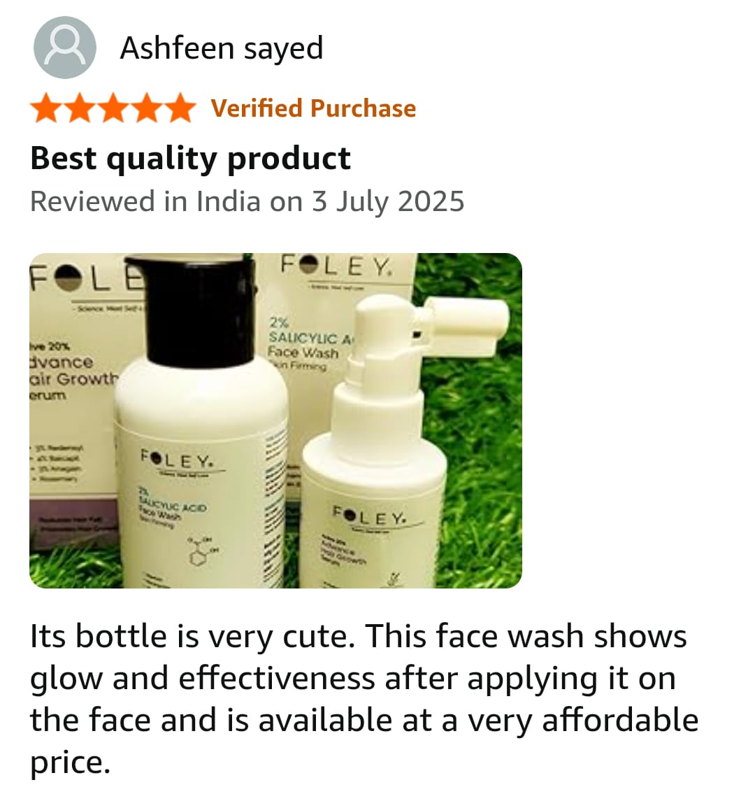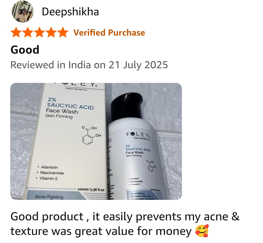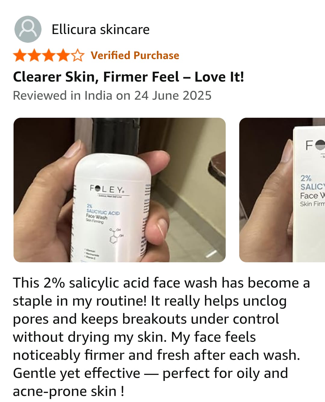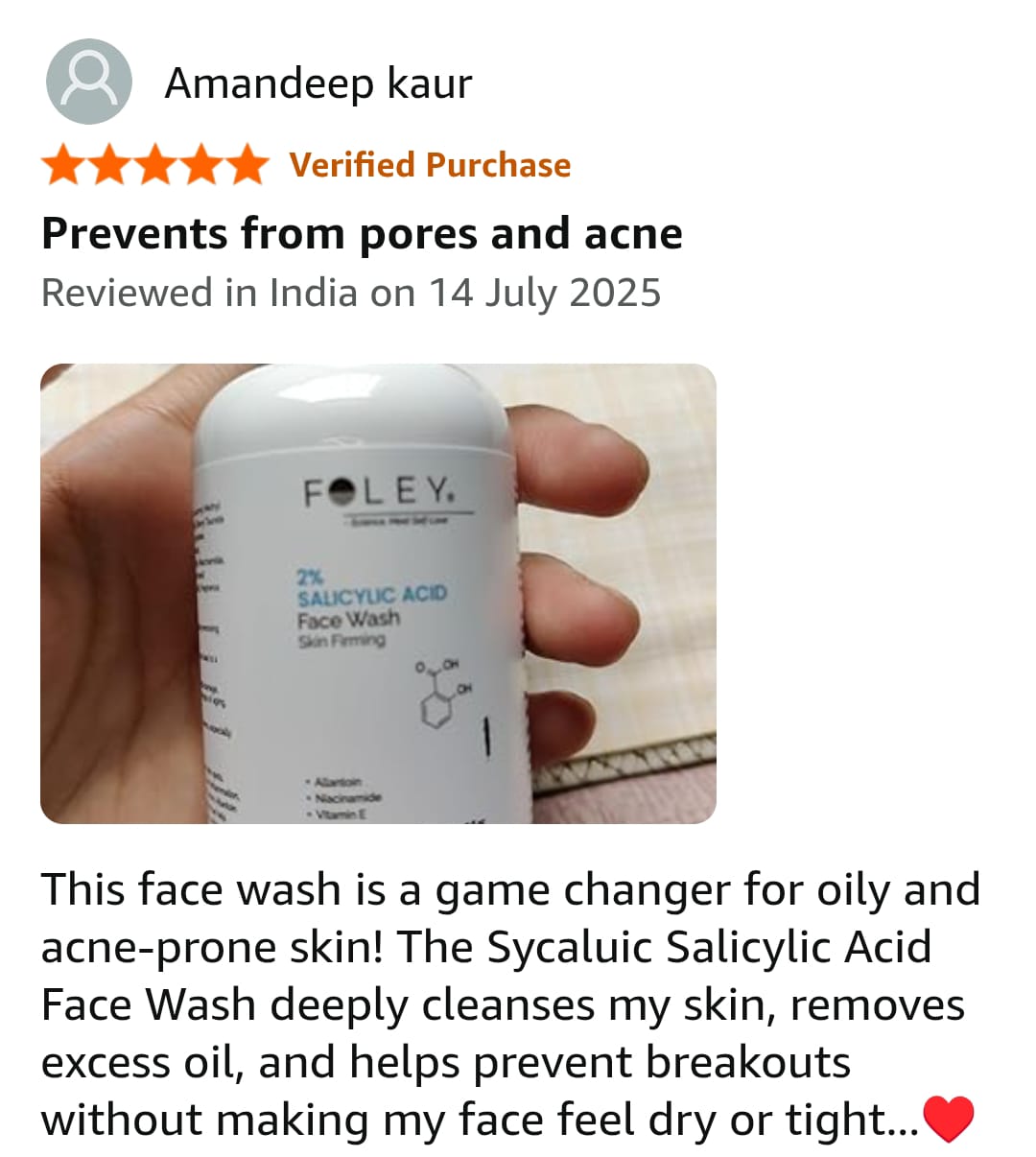 Foley 2% Salicylic Acid Face Wash is dermatologist-tested, oil-free, and non-drying.